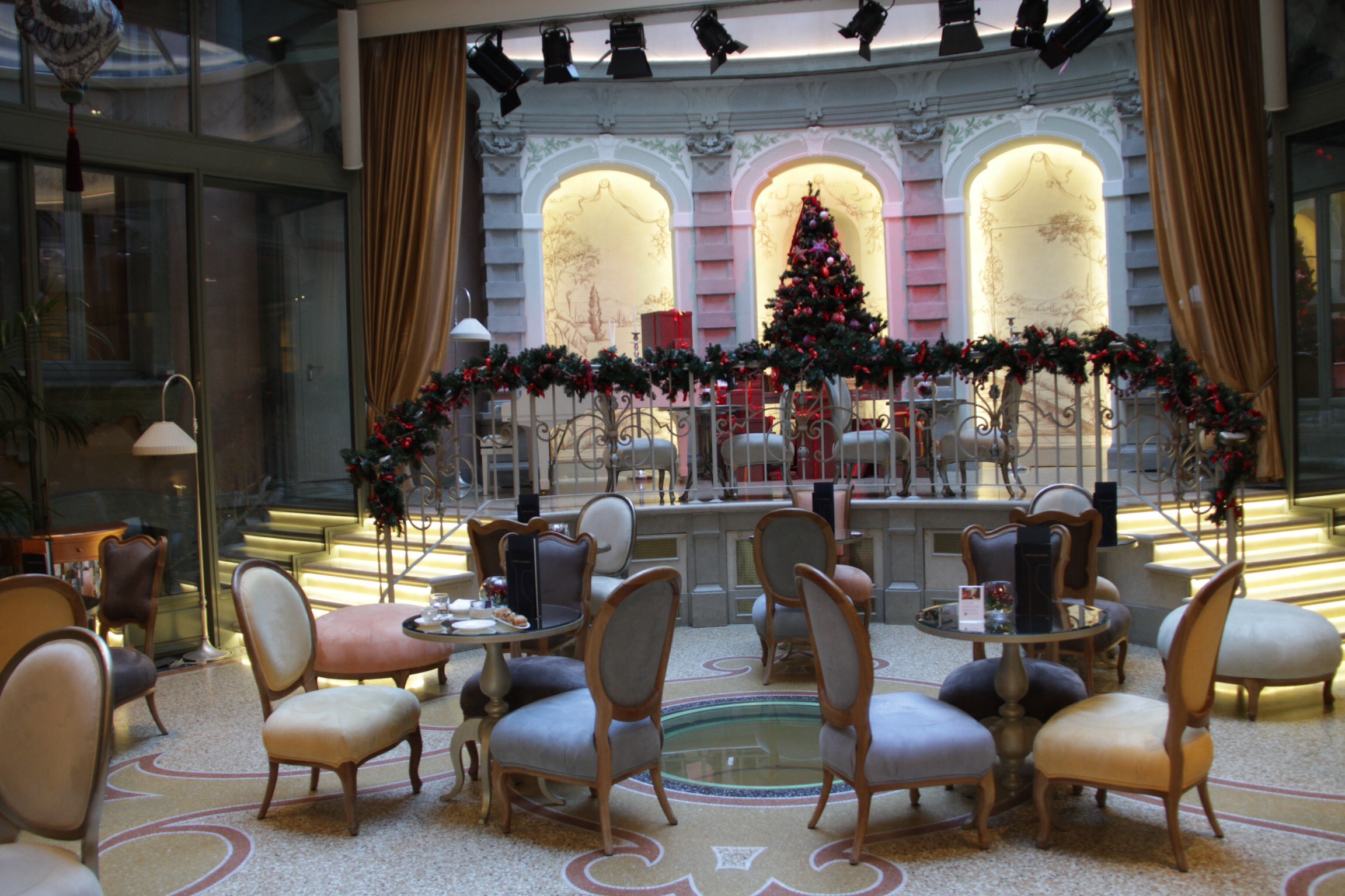 El andén de una estación y un gran reloj con rayas en lugar de números.